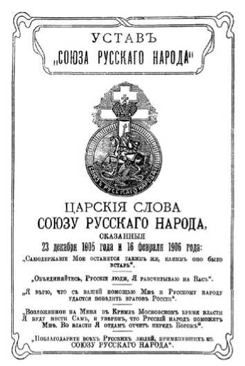 Брошюра «Устав „Союза русского народа“. Царские слова „Союзу русского народа“, сказанные 23 декабря 1905 года и 16 февраля 1906 года» (СПб., 1906)