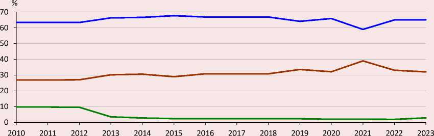 Рис. 2. Технологическая структура производства стали в России в 2010–2023 гг.