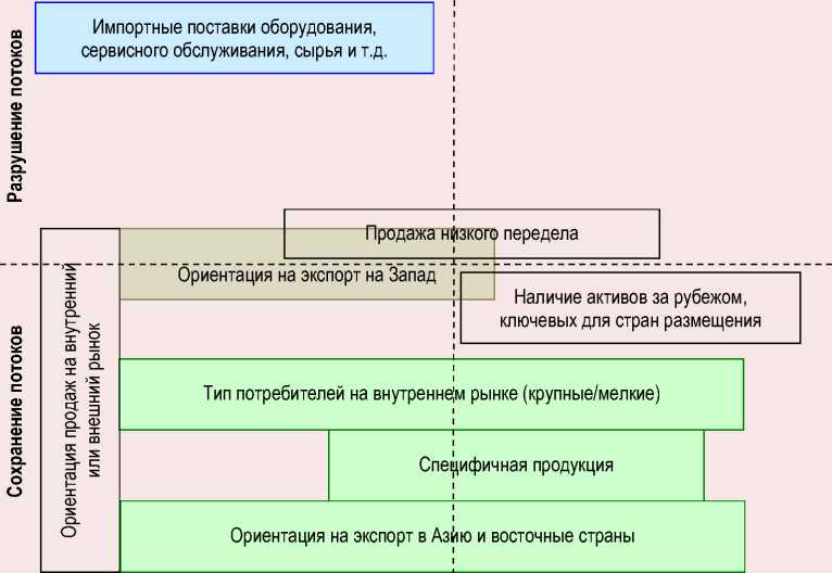 ним шокам оказались цепи поставок, которые ориентированы больше либо на продажи на внутреннем рынке, либо на экспорт в Азию и восточные страны. В ряде случаев соответствие обозначенным факторам позволило сохранить и объем потоков, что особенно проявляется в случае продаж нерядовых (специфических) типов продукции. Большее влияние такие шоки оказали на финансовые потоки, что выразилось в снижении маржинальности продаж производителей черных металлов.