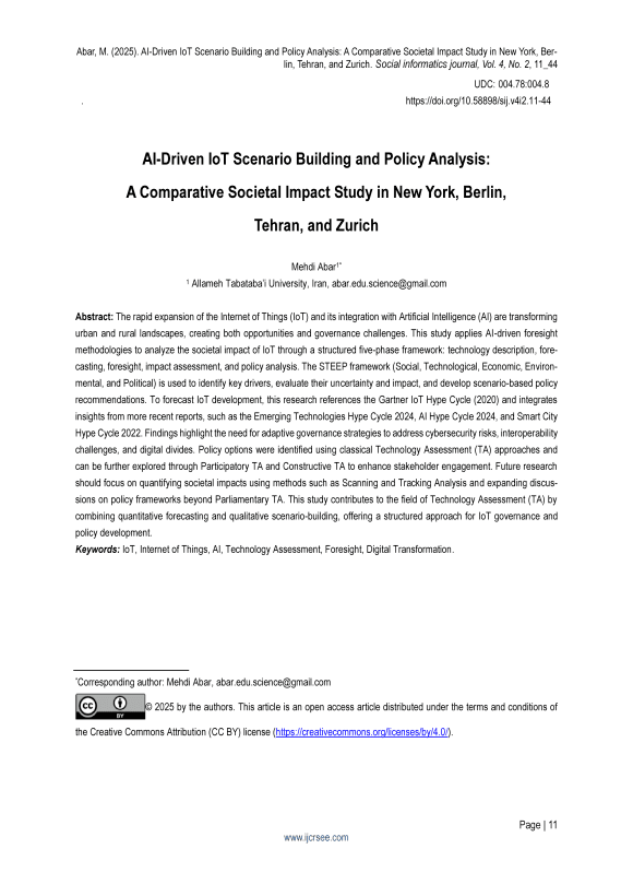 AI-Driven IoT Scenario Building and Policy Analysis: A Comparative Societal Impact Study in New York, Berlin, Tehran, and Zurich