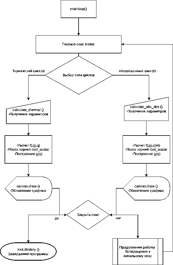 Рисунок 2. Блок-схема программы расчета термического (а) и абсорбционного (б) циклов разделения