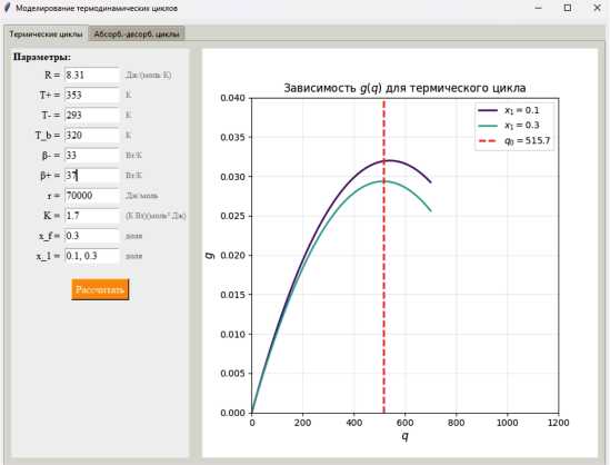 Алгоритм и программное обеспечение для расчета термических циклов разделения газовых смесей с применением термодинамических критериев