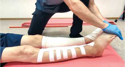 Рис. 3. Выполнение пассивных движений в голеностопном суставе инструктором ЛФК