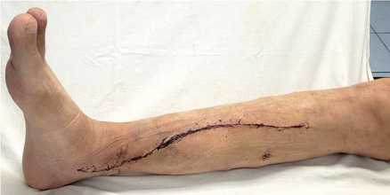 Для обеспечения стабильной иммобилизации и создания условий для первичного заживления послеоперационной раны применяли полужесткий ортез на голеностопный сустав.