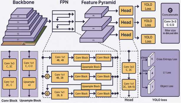 A wide variety of models exists for the task of instance segmentation. These models can be broadly categorized into three types: two–stage, one–stage, and transformer–based. The two–stage category includes models such as Mask R– CNN [25] and Hybrid Task Cascade (HTC) [26]. These are classic architectures, among the first to be developed, which deliver high accuracy but are relatively slow. The one–stage, or real–time, category includes models like YOLOv8 (seg) [22], SOLOv2 [27], and YOLACT [28]. They are extremely fast and now often surpass two–stage models in terms of accuracy. Currently, the state–of–the–art in accuracy is held by transformer–based models, such as OneFormer [29] and Mask2Former [30]. However, they can also be slow, especially when configured for maximum quality, and are often memory–intensive. In our work, we have chosen the YOLOv8 (seg) model (Fig. 4) due to its high inference speed and strong performance metrics on the COCO dataset [31]. While YOLOv8 (seg) is only slightly behind Mask2Former in terms of metrics, it offers a user–friendly training pipeline and enables rapid experimentation.