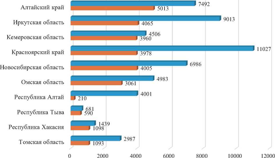Fig. 1. Number of hospitality enterprises in the Siberian Federal District, units, 2024 (compiled by the authors)