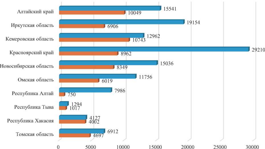 Fig. 3. Number of beds in the hotel services sector of the Siberian Federal District, units, 2024 (compiled by the authors)