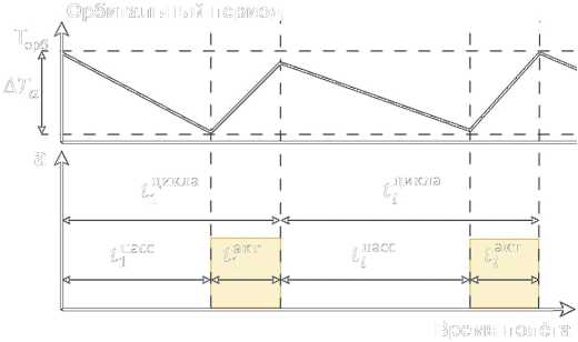 Рис. 3. Способ поддержания низкой рабочей орбиты путем коррекции накопленного отклонения (по периоду обращения)