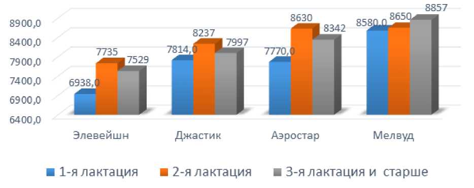 На основании рисунка 4 установлено, что в данном стаде наибольшая молочная продуктивность по удою установлена среди коров 2-й лактации.