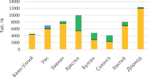 Рис. 1 . Структура землепользования в приграничных с Россией аймаках Монголии в 2022 г. (тыс. га)1