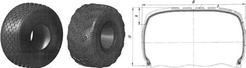 Рис. 1. Шина сверхнизкого давления: а – общий вид; b – профиль шины в меридиональном сечении