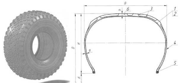 Fig. 2. Ultra-low-pressure tire: a – general view; b – tire profile in a meridional section