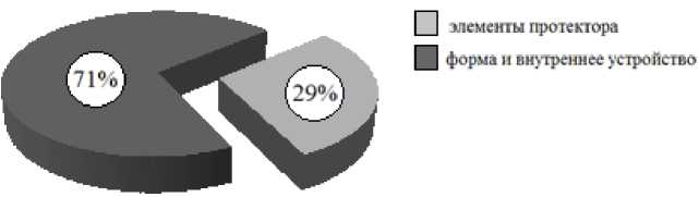 Fig. 7. Diagram of the percentage distribution of technical solutions for the shape and internal structure of the tire