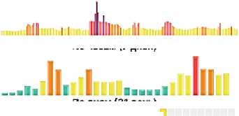 Качество воздуха является одним из основных элементов, влияющих на оптимальную жизнеспособность не только людей, но и флоры и фауны. В настоящее время люди не осведомлены о количественной оценке, идентификации и возможных последствиях для здоровья. Загрязнители воздуха, такие как летучие органические соединения, твердые частицы, диоксид серы, оксид углерода, оксид азота, полициклические ароматические углеводороды, микробные споры, пыльца, аллергены и т. д., в первую очередь способствуют ухудшению качества воздуха. Городское население сильно подвержено воздействию загрязнителей воздуха из-за перенаселения и расположения промышленных предприятий вблизи городов. С целью выявления природных факторов влияния на физико-химические показатели гидробионтов был проведен мониторинг качества и загрязнения воздуха мест с использованием IQAir [10], где были отобраны образцы для последующего проведения исследований. Датчики были установлены в месте с хорошей циркуляцией воздуха, вдали от прямого загрязнения и дыма. При помощи датчиков AirVisual OutDoor было отслежено семь важных параметров окружающей среды: PM1 (вирусы, бактерии, дым от лесных пожаров), PM2.5 (выхлопные газы, промышленные выбросы, дым, пыль), PM10 (пыль, пыльца, споры плесени), показатель качества воздуха, температура, влажность, атмосферное давление и CO 2 . Результаты мониторинга качества и загрязнения воздуха в п. Речной и п. Студёный Плёс (Кемеровская обл.) в течение недели, месяца и года представлены на рисунке 2.
