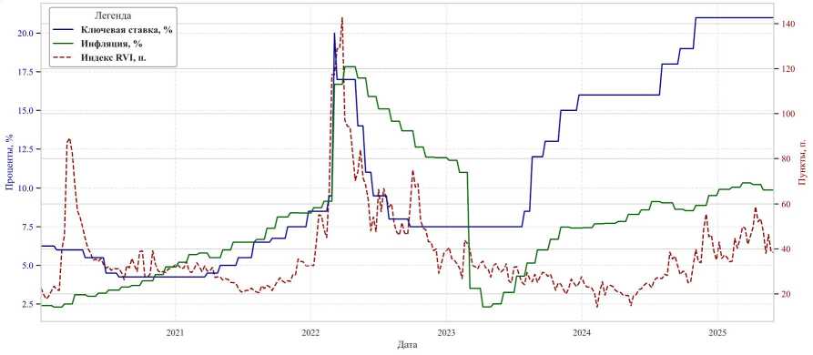 4. RVI – индекс волатильности российского рынка (пункты) как прямой индикатор рыночного риска.