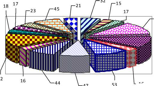 Анализ данных за первый год реализации плана селекционно-племенной работы показывает, что на 01.01.2023 года наибольшее количество маточного поголовья было представлено животными, полученными от быков-производителей, которые указаны на рисунке 2. Общее количество быков-отцов по- прежнему осталось на высоком уровне, что говорит о применяемом индивидуальном подборе.