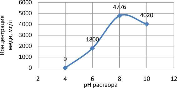 теоретический и практический интерес представляет установление влияния pH водного раствора на интенсивность извлечения меди.