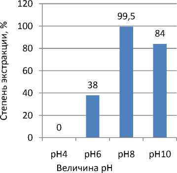Рис. 6. Зависимость степени экстракции меди в оливковое масло от рН исходного раствора