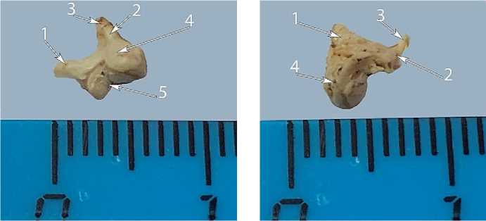 Рис. 11. Наковальня байкальской нерпы в возрасте 7 лет: 1 – короткий отросток;
