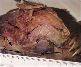4 – caudal leg; 5 – opening between legs; 6 – lenticular bone