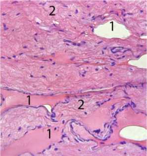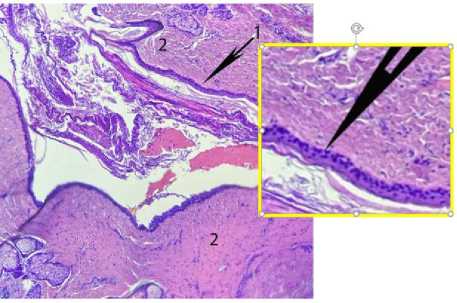 Для выявления особенностей строения микроструктуры слизистой оболочки барабанной полости ее фрагменты заключали в парафиновые блоки, готовили тонкие срезы и окрашивали гематоксилин с эозином по Эрлиху.