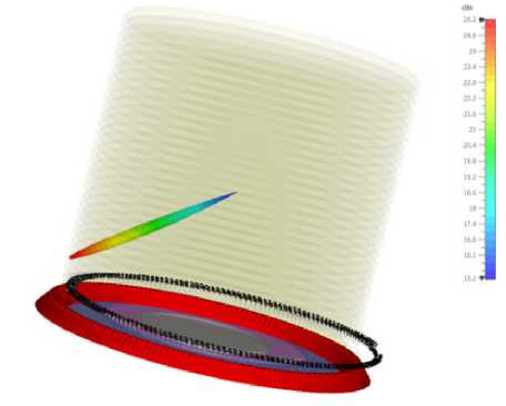 В разработке в системе диаграммообразования линзой Люнеберга применяется 180 входов. Это дает возможность применять высокоэффективное возбуждение, охватывая все пространство в целом. Система возбуждения линзы Люнеберга – это элементы Вивальди, которые обеспечивают передачу энергии в линзу Люнеберга. К тому же, элементы антенн Вивальди располагаются в верхней части, они обеспечивают передачу энергии к нагрузке, а именно, передачу энергии на антенные линии. Прохождение волн через систему диаграммообразования представлено на рисунке 2.