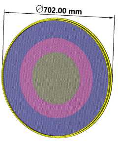 В наилучшем случае величина коэффициента преломления линзы Люнеберга должна изменяться максимально плавно и часто. Для большей простоты реализации было принято решение использовать в применяемой линзе три слоя материалов: внешний слой из тефлона (sr = 2,1), промежуточный слой из полиэтилена (sr = 2,3) и центральный слой из полистирола ( sr = 2,5). Для того, чтобы в антенной системе реализовать диа-граммообразование линзой Люнеберга, применяются две линзы. Эти две линзы разделяются экраном, таким образом обеспечивается повышение эффективности системы возбуждения излучения. Кон- струкция системы диаграммообразования на основе линзы Люнеберга представлена на рисунке 1.