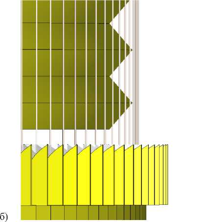 Рисунок 3. Конструкция разработанной антенной системы: а) Внешний вид конструкции; б) Структура дифракционной решетки эшелетт