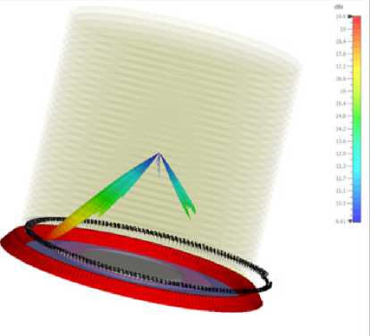 Текст научной статьи Антенная система с гибридным частотно-электронным сканированием на основе диаграммообразования линзой Люнеберга