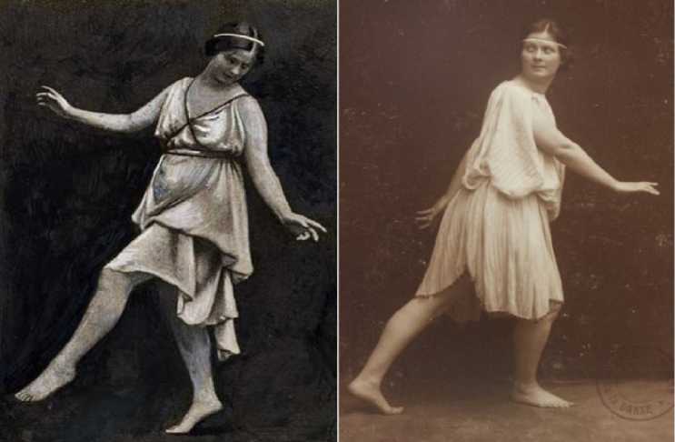 Fig. 5. From left to right: J. Chadel, “Isadora Duncan”, 1937. National Library of France, Department of Prints and Photographs; V.D. Perinet, “Isadora Duncan in a Greek Dance”, Janaea Rose Lyn (McAlee) Collection, USA; O. Rodin, ‘‘Isadora Duncan’’, K. Müller Museum, Netherlands