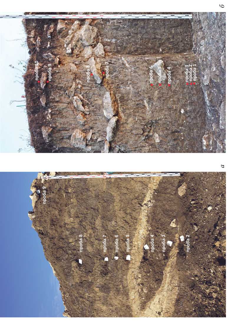 Почва – сложный природный объект, в котором пыльца и споры (в зависимости от конкретных почвенных и растительных условий) могут разрушаться под воздействием химических и биологических факторов, перемешиваться в результате жизнедеятельности почвенных организмов и перемещаться вниз по профилю (см., например: Dimbleby , 1957; Havinga , 1967; Hall , 1981; Holloway , 1989; Davidson et al. , 1999; Lebreton et al. , 2010). В подавляющем большинстве случаев почвы содержат разновозрастные образования; ценность любого анализа будет зависеть от временного разрешения, требуемого для анализа, и временного периода, представленного комплексом ( Davidson et al. , 1999). Исключение – погребенная почва (ПП), которая в результате перекрывания дневной поверхности мощным слоем грунта исключается из многих процессов. В таком случае верхний слой ПП (1–2 см) будет ценным источником информации, изучение которого может позволить реконструировать растительность, существовавшую непосредственно в период начала сооружения насыпи. ПП может сохраняться не только под насыпью, но и в самом теле кургана в случае формирования