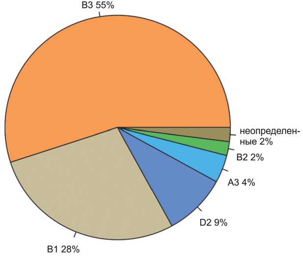 Рис. 5. Распределение морфологических типов микроугля в образце № 9 из кургана Туак-Оба 1