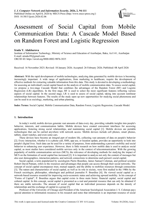 IDR: 15020293 | DOI: 10.5815/ijcnis.2026.02.06