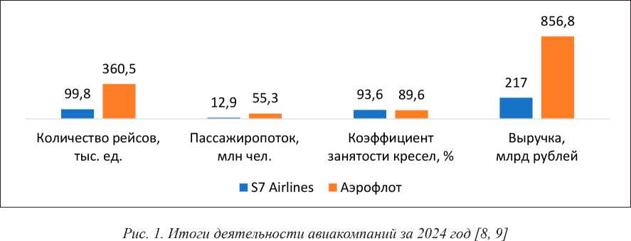 Рассмотрим итоги деятельности исследуемых авиакомпаний за последний год (рис. 1).