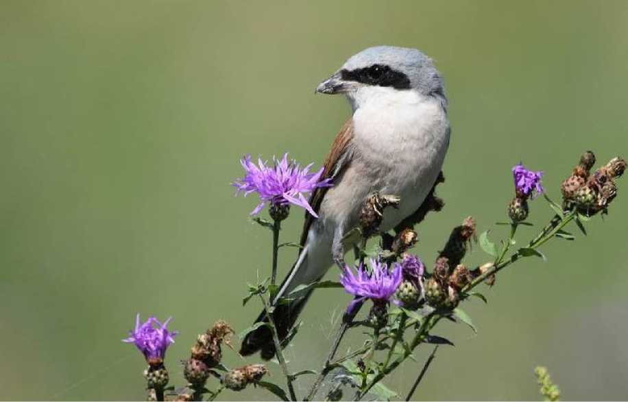 Рис. 3. Характерные виды летней авифауны разнотравно-злаковых степей южного склона Сунженского хребта: сорокопут-жулан Lanius collurio . Фото Д.С.Шевцова