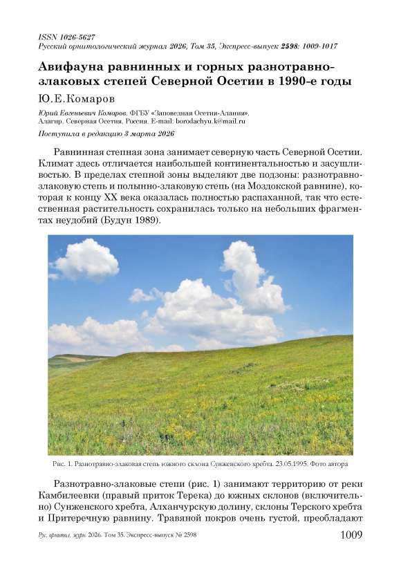 Текст статьи Авифауна равнинных и горных разнотравно- злаковых степей Северной Осетии в 1990-е годы