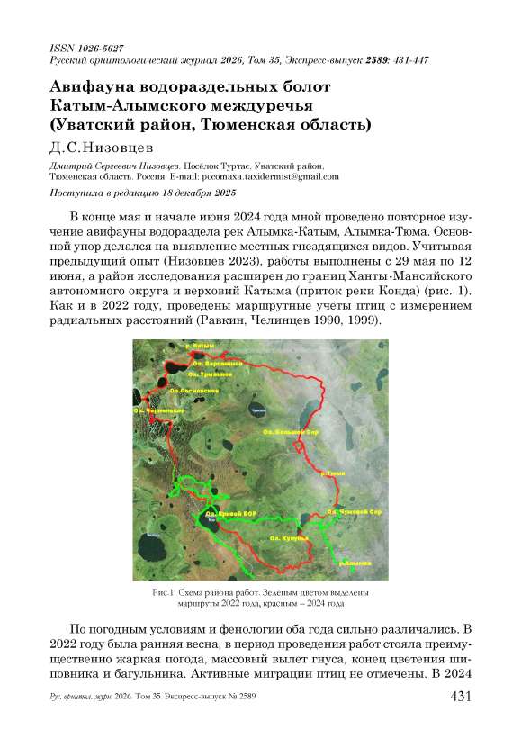 Авифауна водораздельных болот Катым-Алымского междуречья (Уватский район, Тюменская область)