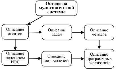 Предлагаемая структура онтологии МАС (см. рисунок 4) включает описание: иерархии агентов и их связей с подсистемами ИЭС; прикладных задач и используемых для их решения методов; математических моделей подсистем ИЭС; программных реализаций математических моделей и методов.