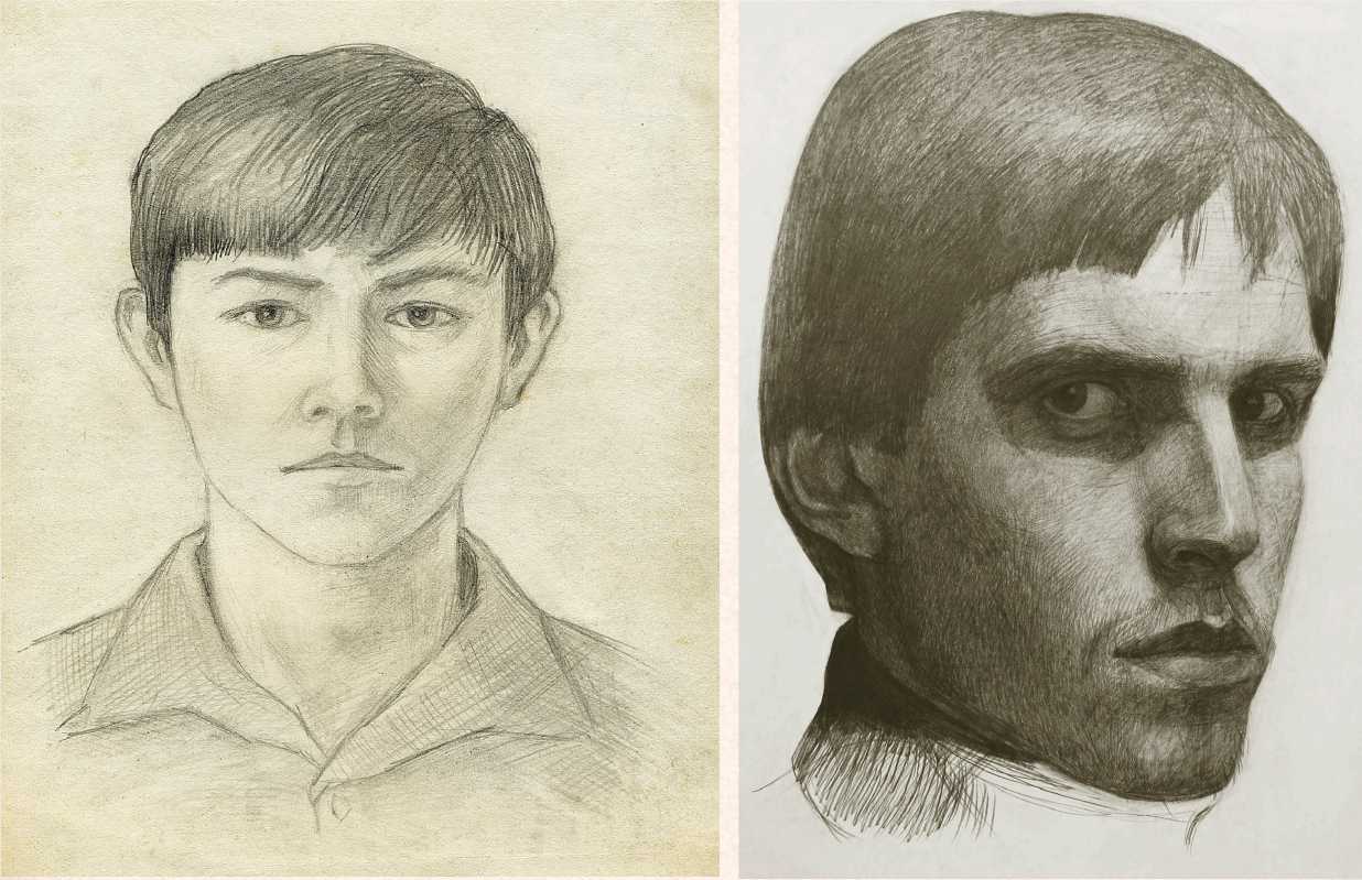 Очевидно, что все рассмотренные графические автопортреты Кияйкина выполнены в то время, когда художник был еще в начале творческого пути, в периоды учебы в Саранском художественном училище и в институте имени В. И. Сурикова. Небольшие по размерам «быстрые рисунки» или длительные штудии практически лишены аксессуаров, аскетичны по средствам выразительности. Композиции фокусируют внимание на лице молодого человека и решают в первую очередь задачу внешнего сходства (рис. 3–5). Однако умение передать визуальное сходство – не единственная поставленная в них цель. Непроизвольно при изучении своего облика в автопортрет-ном изображении проявлялись и те чувства, которые художник испытывал по отношению к самому себе. Кияйкин пытался запечатлеть в молодом выразительном лице основополагающие черты своего характера, твердость и несгибаемость своей натуры.