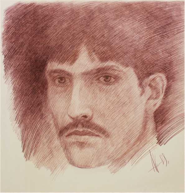 Второй автопортрет училищного периода, выполненный в ноябре 1982 г., представляет собой кратковременный учебный набросок. Задача, стоящая перед художником – быстрая фиксация облика – решена вполне. Минимализм технических приемов –