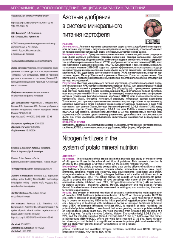 IDR: 140314221 | УДК: 635.21:631.84 | DOI: 10.18619/2072-9146-2026-1-92-98
