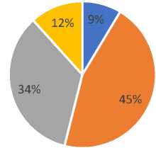 With regard to the frequency of online shopping, the largest percentage of respondents indicated that they shop online rarely (1–2 times per month), accounting for 46.2% of the sample. A slightly smaller proportion reported shopping occasionally (3–4times per month), while 13.9% shop frequently or very frequently online (once a week or more). Only 1.5% of respondents indicated that they never shop online (Figure 1).