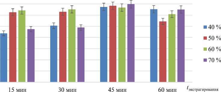 Показатели степени извлечения ДВ из листьев смородины этанолом различных концентраций представлены на рис. 4.