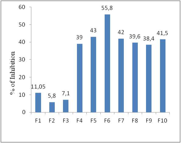 Figure 6. Percent of trypsin inhibition by crude extract fractions (protease inhibitors)