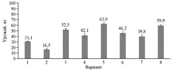 Урожай определяли, суммируя массу созревших плодов в каждом варианте.