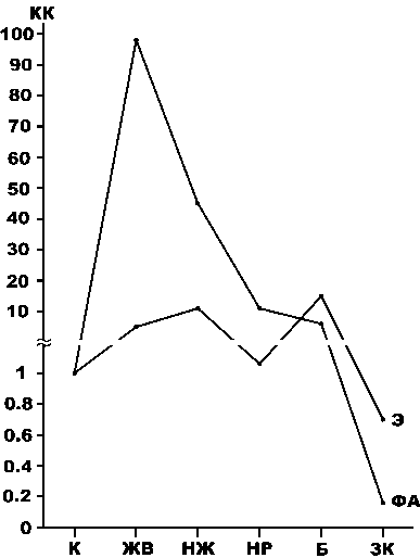 В мочевых камнях выявлены 18 микроэлементов, почти исключительно органофильных: 46 % — эссенциальные, 54 % физиогенно-активные. В моче-1 обнаружен 41 органофильный микроэлемент с сильным преобладанием (86 %) эссенциальных элементов. По степени суммарного обогащения микроэле- ментами моча-1 преобладает над мочевыми камнями в 26 раз. В моче-2 установлен также 41 органофильный микроэлемент с преобладанием (75 %) эссенциальных элементов. По степени суммарного обогащения микроэлементами образцы мочи-2 в два раза уступают мочевым камням и в 49 раз — образцам мочи-2.
