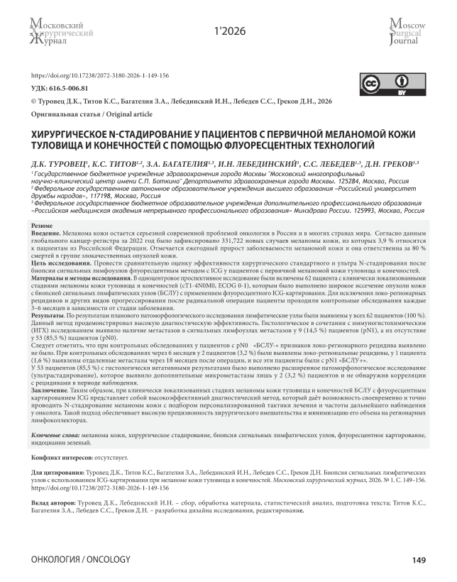 IDR: 142247252 | УДК: 616.5-006.81 | DOI: 10.17238/2072-3180-2026-1-149-156