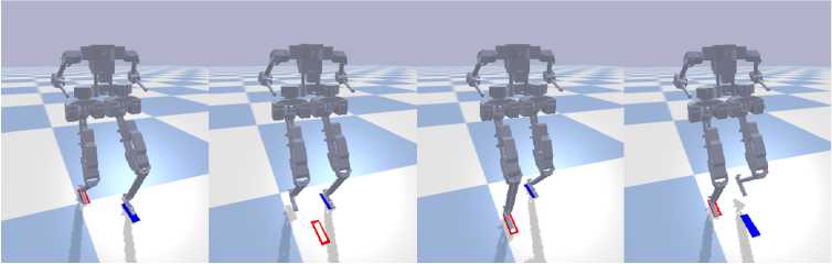 Для оценки устойчивости каждого контроллера к торсу робота прикладывались внешние импульсы силы, а его реакция — падение или восстановление равновесия — отслеживалась. Каждый тест состоял из 500 повторений с максимальными значениями импульса силы 7 Н с и 5 Нс. В ходе испытаний роботу было задано поддерживать нулевую скорость.