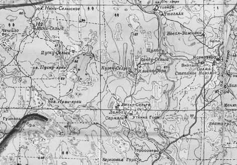 Рис. 1. Фрагмент топографической карты 1941 года района боевых действий. Из сети Интернет (свободный доступ)
