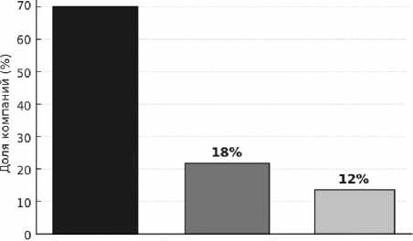 В исследовании применялся комбинированный подход, включая: количественный анализ (обработка данных анкет (частотные распределения, корреляции между уровнем зрелости, рисками и эффективностью)); качественный анализ (контент-анализ открытых ответов и интервью, что позволило выявить субъективные оценки влияния ИИ на прозрачность и вовлеченность); сравнительный анализ (на наличие цифрового разрыва и сопоставление с результатами западноевропейских компаний, где интеграция ИИ в HR достигает 60–80 %).